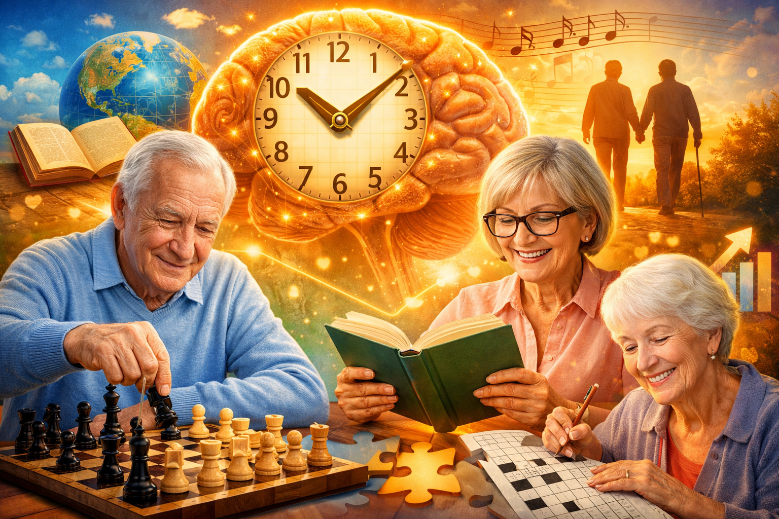 الأنشطة الذهنية المحفزة — مثل الشطرنج، القراءة، الألغاز، تعلم مهارات جديدة — ترتبط بتأخير ملحوظ في ظهور أعراض ألزهايمر وضعف الإدراك البسيط.