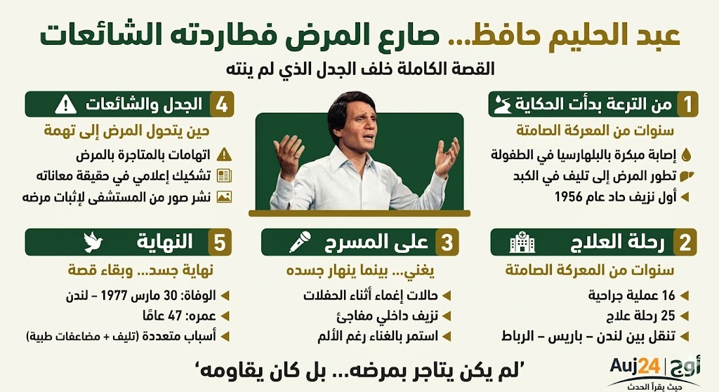 لم يكن اتهام عبد الحليم حافظ بالمتاجرة بمرضه سوى انعكاس لنجاحه الطاغي، وربما لشكٍّ يلاحق كل نجم كبير. لكن الوقائع الطبية، ومسار حياته، وسنوات معاناته الموثقة—ترسم صورة مختلفة تمامًا.