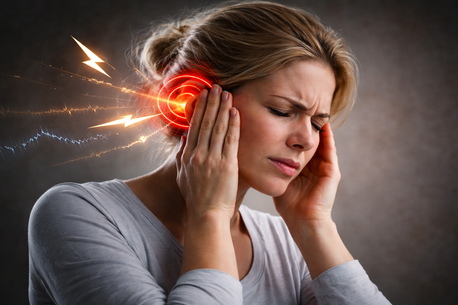 طنين الأذن هو إدراك صوت غير موجود فعلياً في البيئة المحيطة (صورة مولدة بالذكاء الاصطناعي)