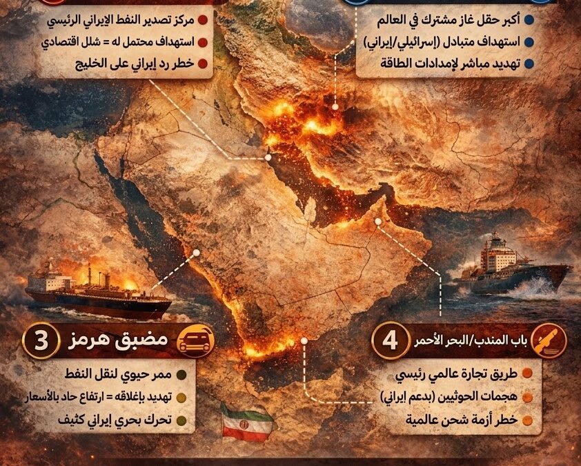 في ظل تصاعد الحرب مع إيران، لم تعد المواجهة مجرد تبادل ضربات، بل أصبحت رهينة أربع نقاط جغرافية حساسة قد تحدد اتجاهها ونهايتها.