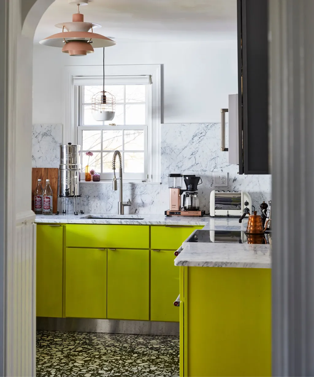 لون أخضر ليموني مشبع يضخ طاقة وحيوية في المساحة ( Nicole Lanteri Design/Brie Williams )